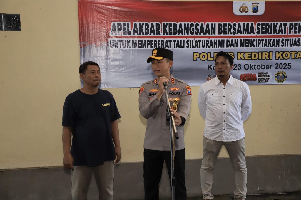KABARINSPIRATIF.COM, KEDIRI KOTA – Dalam upaya memperkuat sinergitas antara kepolisian dan elemen pekerja, Polres Kediri Kota menggelar Apel Akbar Bersama